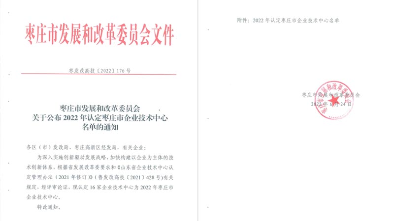 【概要描述】山東豐源新型材料科技股份公司 技術中心 被成功認定為 “棗莊市企業技術中心”