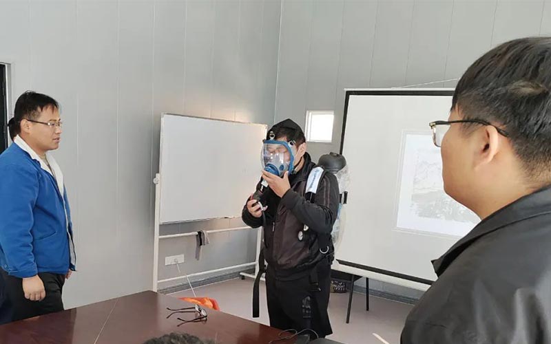 消防安全知識培訓。針對消火水帶、滅火器、正壓式呼吸器的使用方法及火災疏散逃生演練、消防規程、消防係統圖等消防知識對員工進行了培訓,並進行了實地演練。